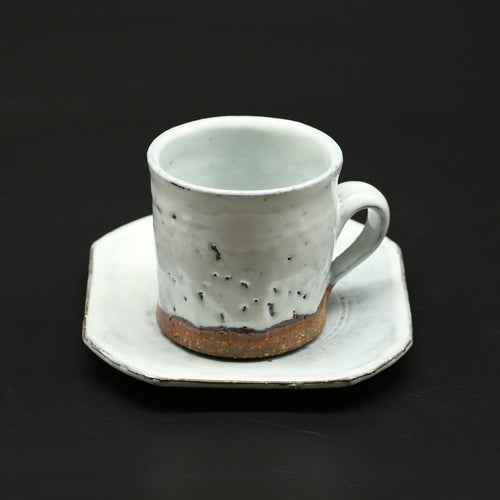 萩面取珈琲碗(皿付)<波多野英生> hagi mentori-kohiwan <Hideo Hadano>
